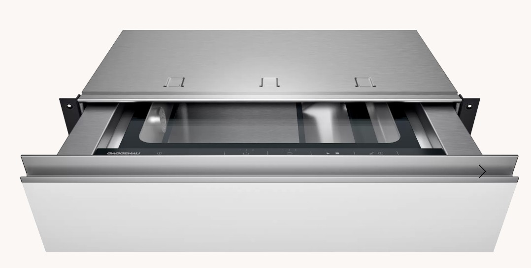 Intuitivní dotykové ovládání přes ovládací panel na odsavači integrovaném do varné desky, varná deska a odsávání zcela zapuštěné, nadměrně velká varná zóna s celoplošnou indukcí.